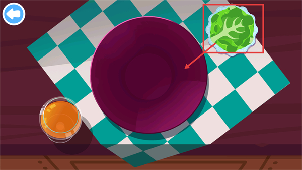 2、按照提示將【生菜】放到盤子中,完成菜品制作的初始步驟,推進烹飪任務的進度。