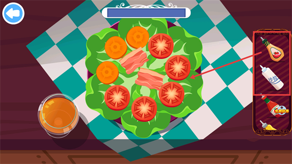 3、繼續添加【胡蘿卜】【番茄】等食材,再選擇【沙拉】醬調味,完善當前菜品的制作內容。