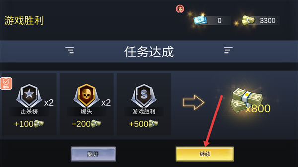 4、達(dá)成【游戲勝利】后,領(lǐng)取【擊殺榜-爆頭】等獎(jiǎng)勵(lì),點(diǎn)擊【繼續(xù)】進(jìn)入下一局挑戰(zhàn)。
