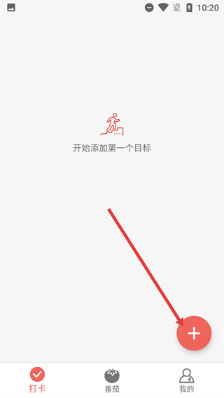 2、在打卡頁(yè)面點(diǎn)擊右下角的【+】按鈕,可觸發(fā)添加目標(biāo)的功能入口,準(zhǔn)備創(chuàng)建新目標(biāo)。