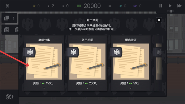 3、在【城市合同】界面選擇要承接的項目(如【單間公寓】),這類項目會對應不同的獎勵。