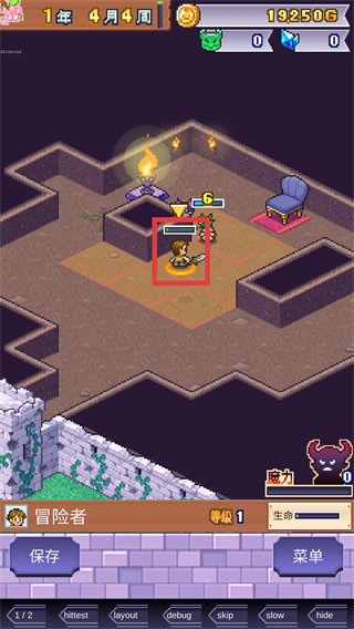 4、當(dāng)場景中出現(xiàn)“等級1”的冒險者單位時,操控已部署的怪物與冒險者互動,推進游戲的探索/戰(zhàn)斗流程。