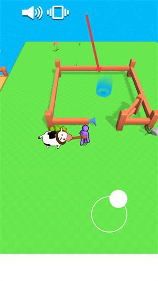 4、跟隨指引將捕獲的奶牛拖入【圍欄區域】,完成奶牛的安置,推進牧場經營的流程。