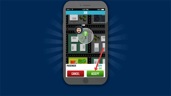 3、當彈出乘客訂單界面時,點擊綠色的“ACCEPT”按鈕,接受該接送任務。