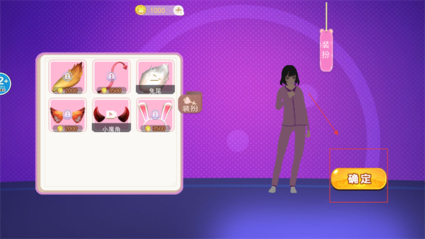 2、在裝扮界面選擇喜歡的裝飾如【兔尾】【小魔角】累計(jì)金幣購買,點(diǎn)擊【確定】進(jìn)入游戲環(huán)節(jié)。