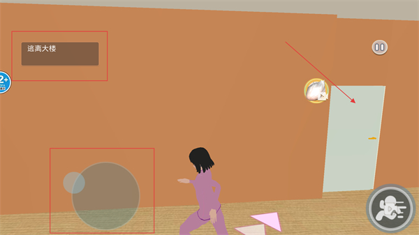 3、在【逃離大樓】場景,操控角色移動到門的方向,避開障礙,準(zhǔn)備完成逃離任務(wù),注意互動元素。