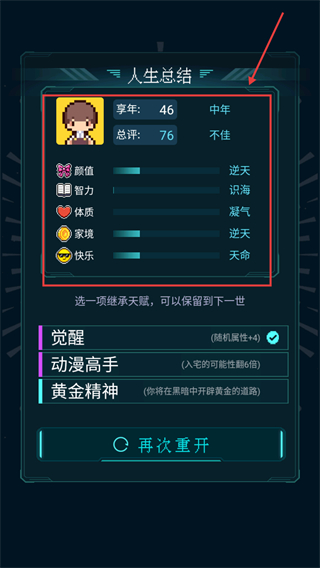 4、人生總結時優先繼承強力天賦,保留核心優勢,為下一世重開積累有利開局基礎。