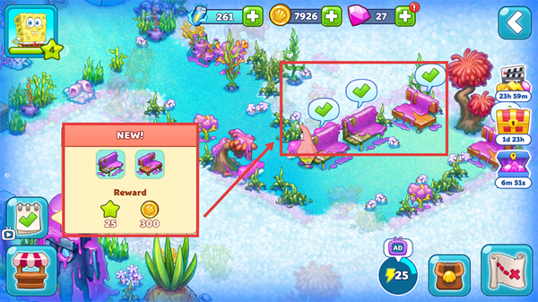 3、完成對應任務后會出現【NEW!】提示,領取【Reward】可獲得【25】星與【300】金幣,同時解鎖場景中的物品。