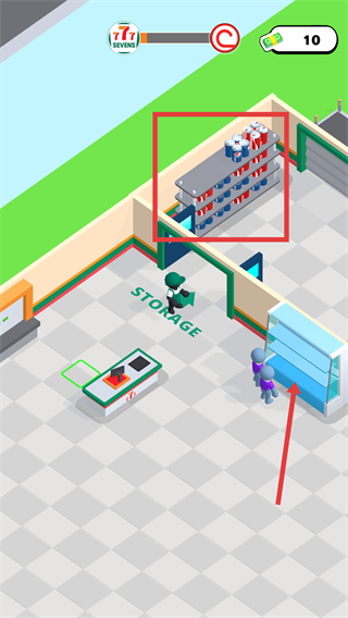 1、進入商店界面后,引導顧客至對應區域,同時關注【STORAGE】方向,準備補充商品。