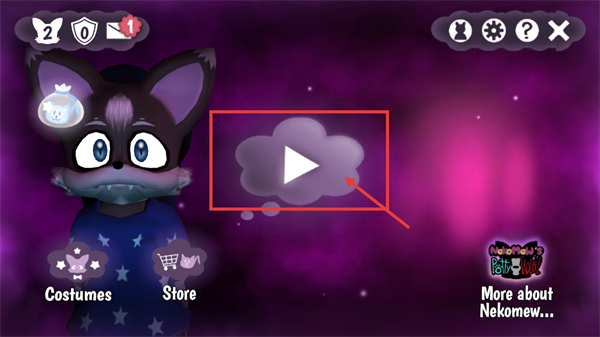 1、界面顯示Nekomaw相關元素,點擊標注的播放按鈕進入游戲,開啟該角色對應的互動關卡,推進游戲的劇情流程。