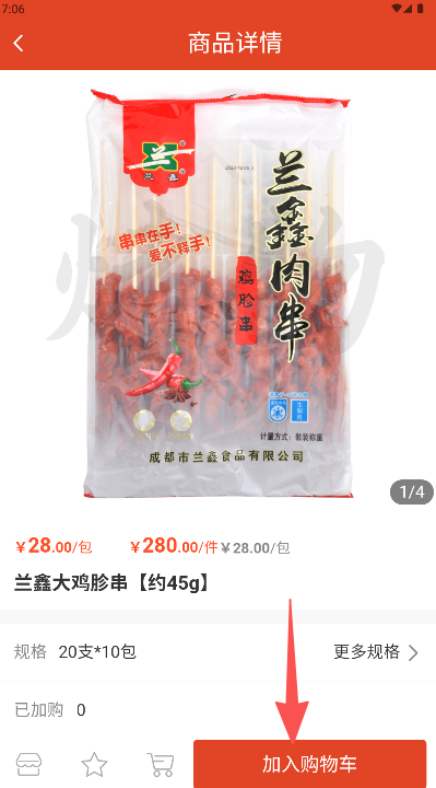 3、在商品詳情頁點擊“加入購物車”按鈕。