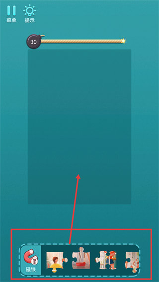 2、進入拼圖關卡后,看到頂部【30】倒計時,從紅色框選的底部拼圖塊中選擇對應塊,開始拼接拼圖的基礎區域。