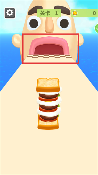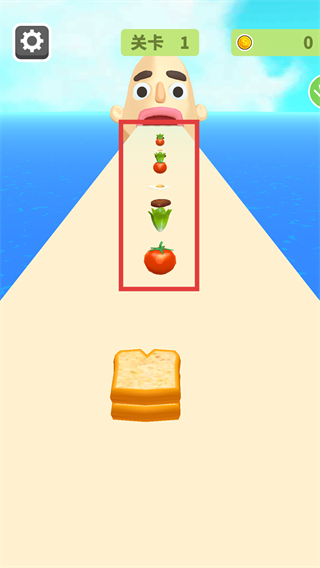 3、待食材全部堆疊完成后,角色會張開嘴,將組合好的三明治送入角色口中。