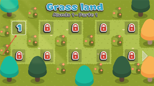 1、進入【Grass-land-Mundo-1-Parte-1】的關卡界面,點擊解鎖的【1】號關卡,即可進入對應關卡開始挑戰。