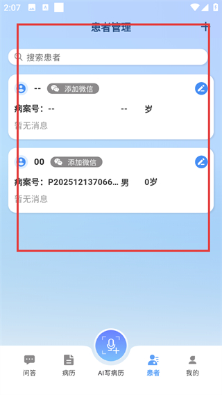 4、提交患者信息后回到患者管理頁,就能看到剛添加的患者條目,后續(xù)可管理其相關(guān)信息啦。