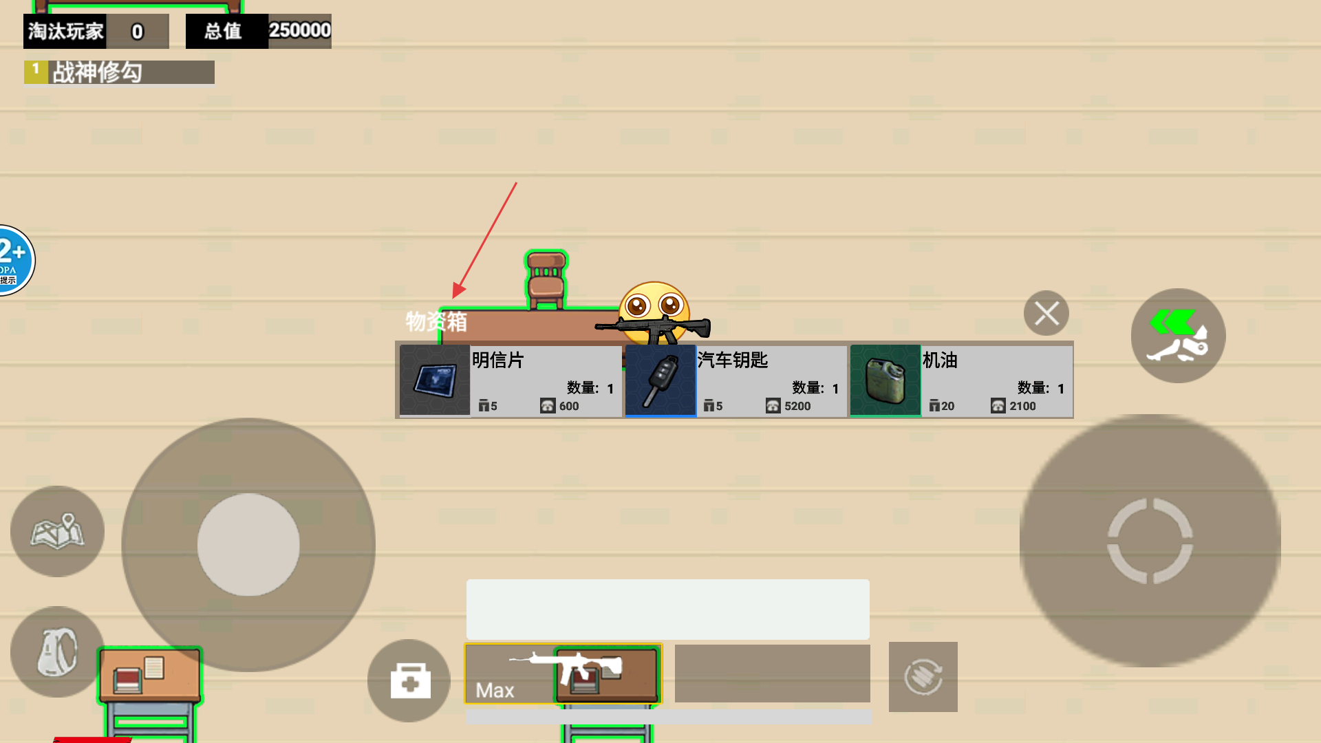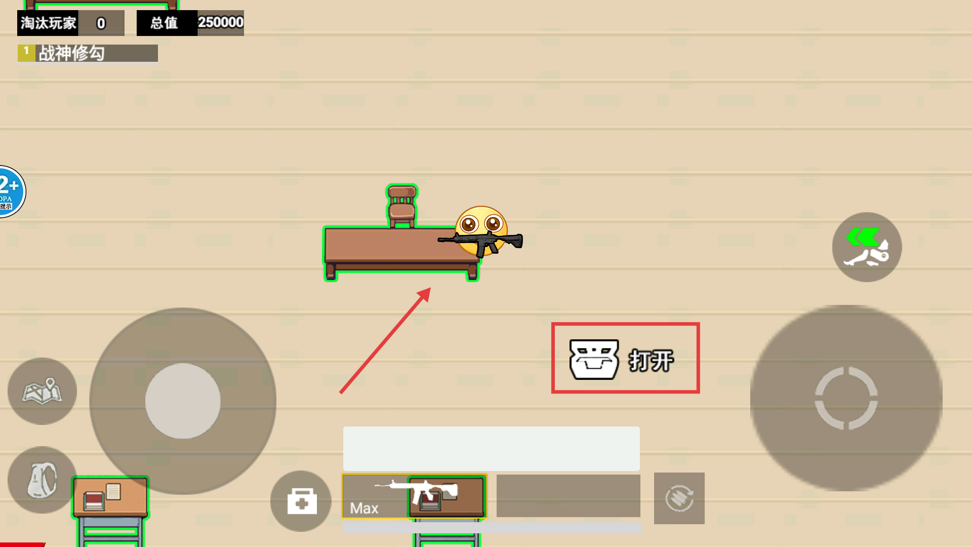 2、進入游戲后找到【物資點】,點擊【打開】按鈕獲取箱內物資,增強自身戰斗能力。