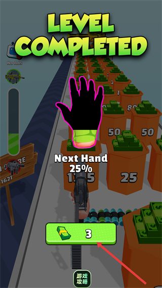 4、完成關卡后界面顯示【LEVELCOMPLETED】,點擊綠色按鈕領取獎勵。