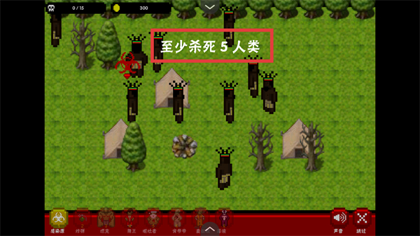 2、關(guān)卡目標(biāo)為“至少殺死5人類”,操控感染體移動(dòng),接觸人類完成感染擊殺,積累進(jìn)度。