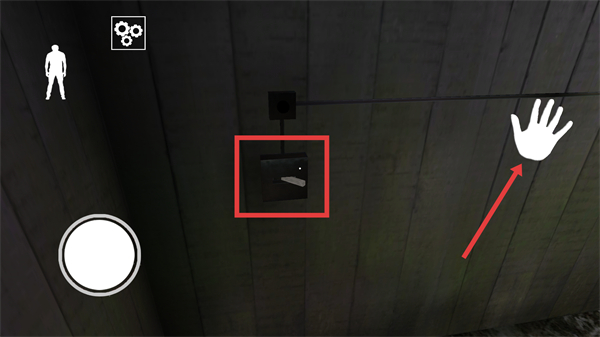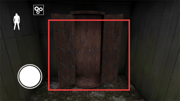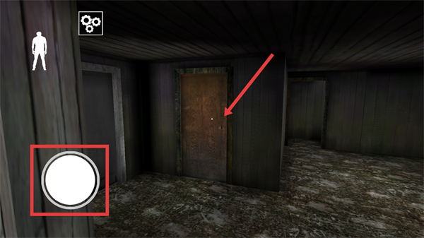 1、通過左側(cè)圓形按鈕操控角色,向紅色框指向的門移動(dòng),繼續(xù)探索場景,尋找逃生相關(guān)道具。
