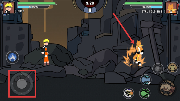 1、操控【左下角-方向輪盤】移動角色,靠近敵人,準備發起攻擊。