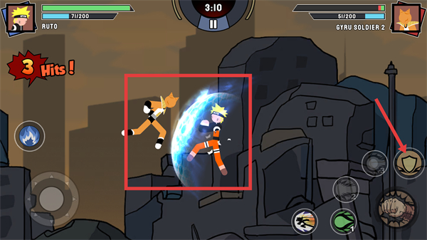 2、點擊【右下角-拳頭圖標】釋放普攻,連擊觸發【10-Hits!】,提升傷害輸出效率。