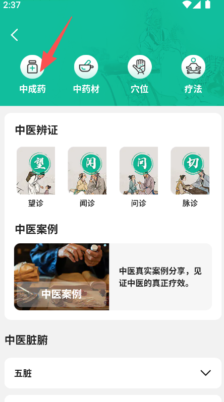 3、實現(xiàn)中醫(yī)辨證功能,進入對應板塊,了解中醫(yī)辨證相關(guān)的內(nèi)容及實際案例。