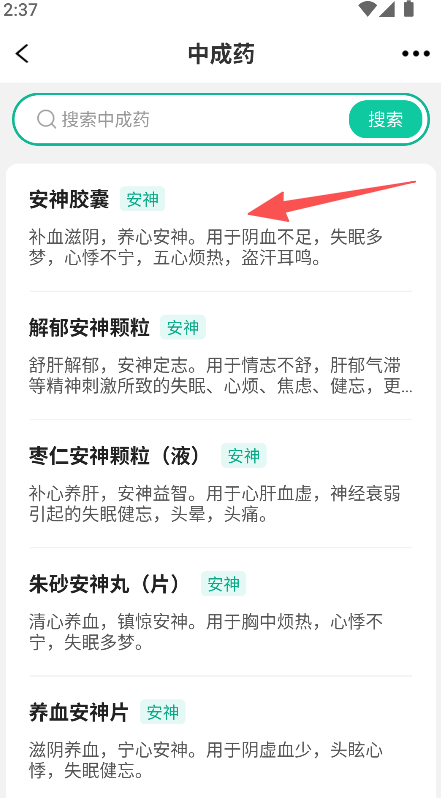 2、支持中成藥查詢功能,在對應分類頁面,搜索或查看中成藥的功效等信息。