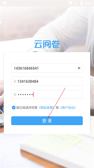 4、點擊【登錄】按鈕,完成云閱卷平臺的賬號登錄操作。