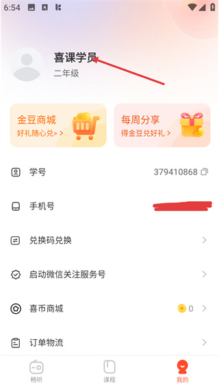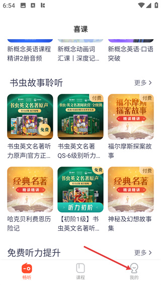1、在喜課的暢聽頁面,點擊底部【我的】按鈕,進入個人中心頁面。