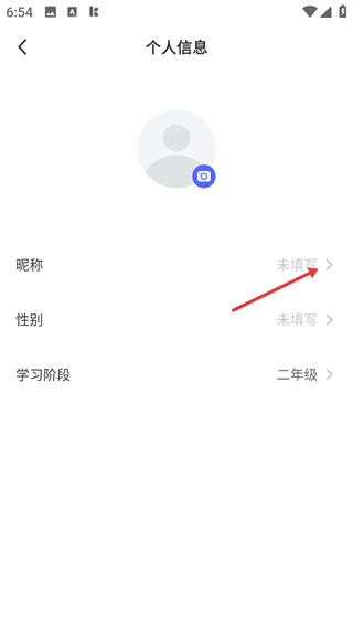 3、進入個人信息頁面后,可看到【昵稱】、【性別】等信息的填寫狀態,點擊【昵稱】選項即可進入編輯頁面。