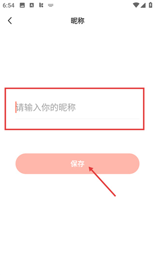 4、在昵稱編輯頁面的輸入框中填寫內容后,點擊下方【保存】按鈕,即可完成個人昵稱的設置操作。