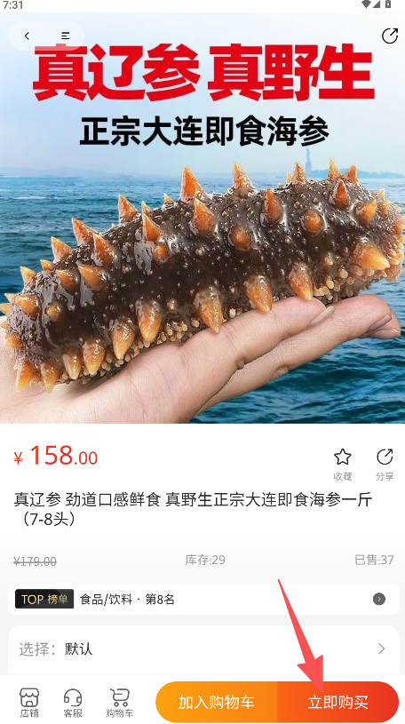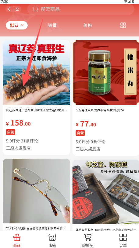 2、在商品列表瀏覽“真遼參 真野生 正宗大連即食海參”商品點擊可查看詳情。