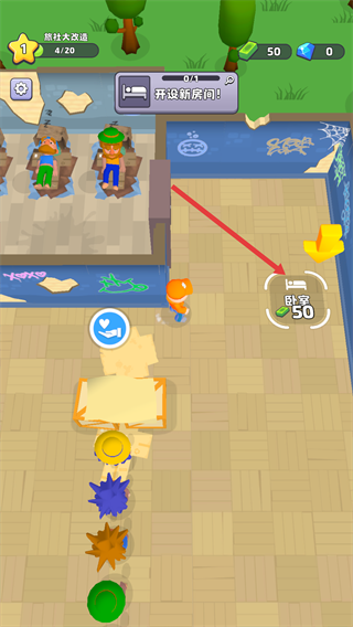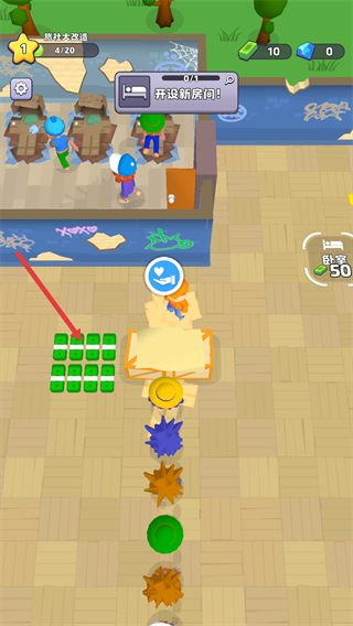 3、依據提示,消耗50資源點擊【臥室】開設新房間。