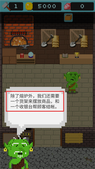 2、建造熔爐后,需補充【貨架】和【收銀臺】,完善商店功能以擺放商品、方便顧客結賬,提升經營效率。