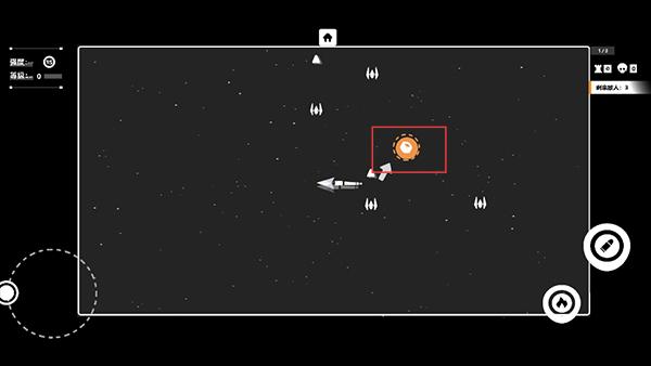 3、進入游戲后通過左側遙感控制飛船旋轉和移動,右側按鈕控制射擊,需靈活躲避敵人子彈。