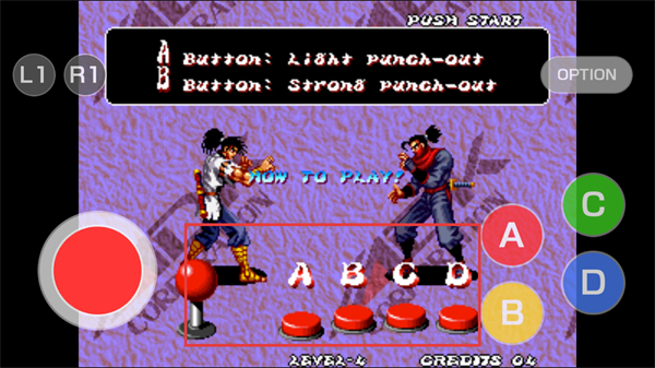 2、查看操作說明:【A-Button】對應輕拳、【B-Button】對應重拳,記住按鍵功能,為對戰做準備。