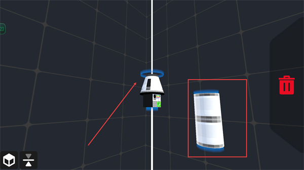 2、在組裝界面,從右側零件欄選取合適部件,拖拽至火箭主體進行拼接,逐步完善火箭的基礎結構。