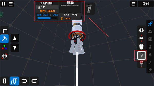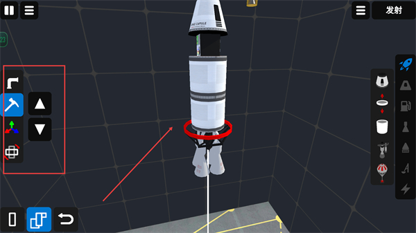 3、完成主體拼接后,通過左側操作按鈕調整部件位置,確保結構穩定,再點擊發射按鈕準備升空。