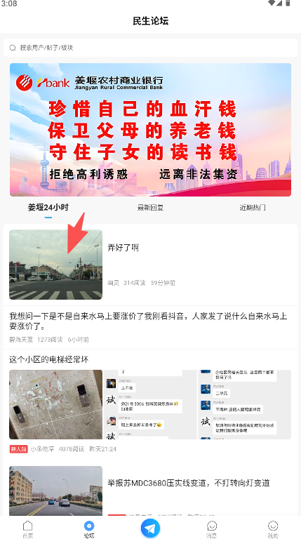 2、內(nèi)容組織圍繞姜堰事、民生論壇等板塊展開,集中呈現(xiàn)本地動態(tài)、生活資訊與話題討論。