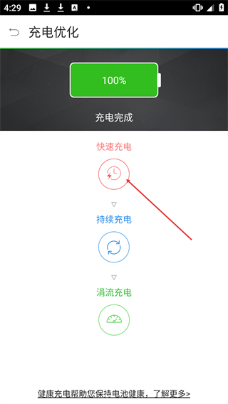 3、在充電優化頁面,點擊【快速充電】選項可查看對應的充電數據展示頁面。