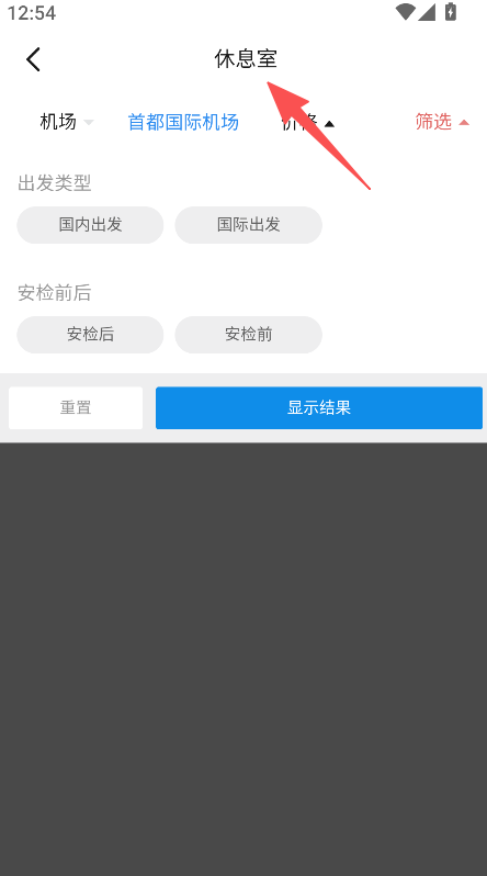 3、具備機場場所篩選功能,可選擇出發(fā)類型安檢時段,點擊顯示結(jié)果獲取對應(yīng)場所信息。