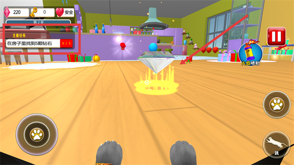 4、在房子里探索各區(qū)域,尋找并收集【鉆石】,累計(jì)找到5顆完成任務(wù),解鎖新的整蠱玩法。