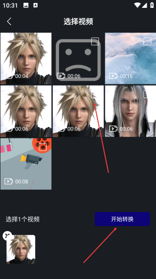 3、在選擇視頻頁,選中【目標視頻】后點擊【開始轉(zhuǎn)換】,進入變速設(shè)置頁面。