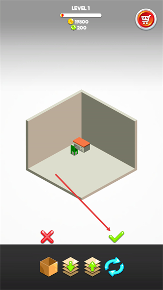 4、將物品放置到目標位置后,點擊界面底部的綠色對勾按鈕,即可確認布置操作,完成房間裝飾的步驟。