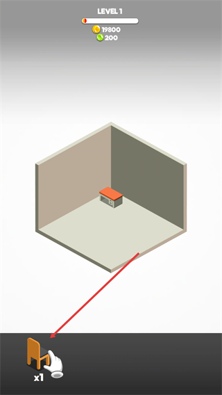 3、購買物品后,在房間界面底部會顯示已獲取的物品(如椅子),點擊該物品可將其放置到房間內的對應位置。