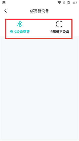 2、進入綁定新設備界面,可通過【查找設備藍牙】搜索外設,也能選擇【掃碼綁定設備】來完成設備關聯操作。
