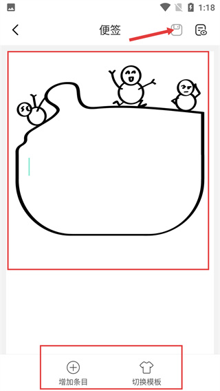 4、選定【便簽】模板后,可點擊【增加條目】添加內容,也能通過【切換模板】更換不同的便簽樣式,點擊打印按鈕即可用該模版打印內容。