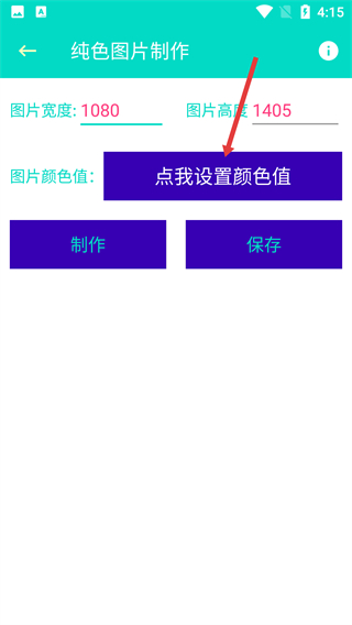 2、進入純色圖片制作頁面后,可設置圖片寬度、高度,點擊【點我設置顏色值】按鈕配置圖片顏色。