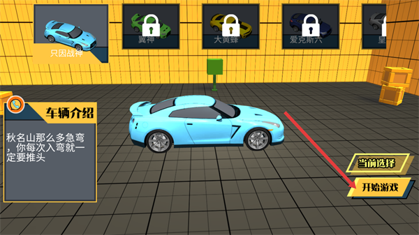2、在車(chē)輛選擇頁(yè),選擇解鎖的【只因戰(zhàn)神】車(chē)輛,點(diǎn)擊【開(kāi)始游戲】進(jìn)入駕駛關(guān)卡。