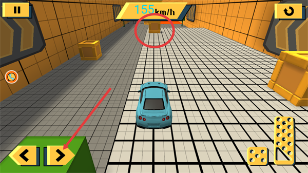 4、駕駛過(guò)程中,需避開(kāi)障礙物(如箱子),同時(shí)關(guān)注車(chē)速(如155km/h),平穩(wěn)完成賽道挑戰(zhàn)。
